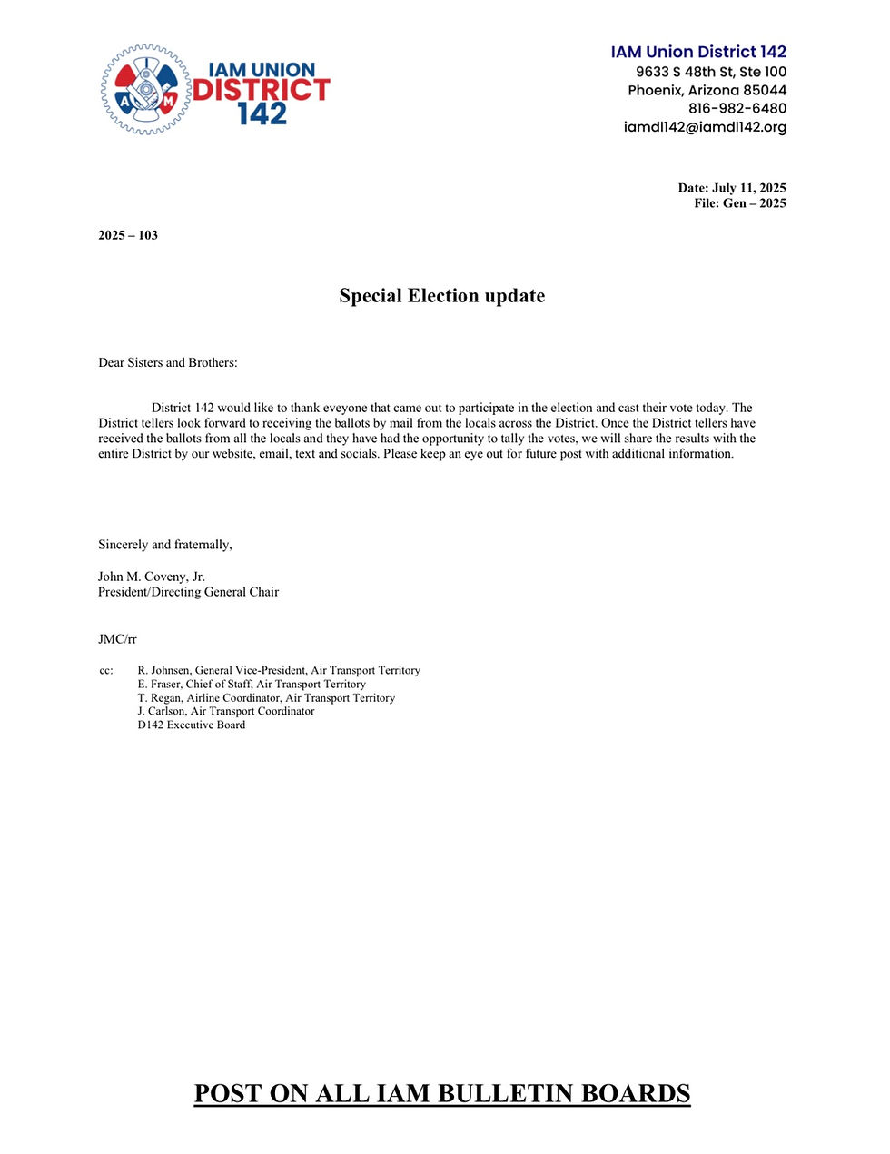 SPECIAL ELECTION UPDATE